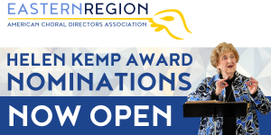 THE ACDA EASTERN REGION EXECUTIVE BOARD & CONFERENCE COMMITTEE are accepting nominations for The Helen Kemp Lifetime Achievement Award to be presented in February at the Boston conference. The award …